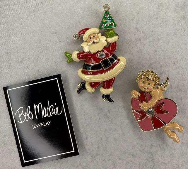 LOT 17 - (2) Bob Mackie Santa & Valentine Pin Brooch with Box
