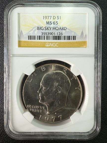 LOT 114 - 1977 D Eisenhower Dollar $1 Big Sky Hoard NGC MS65